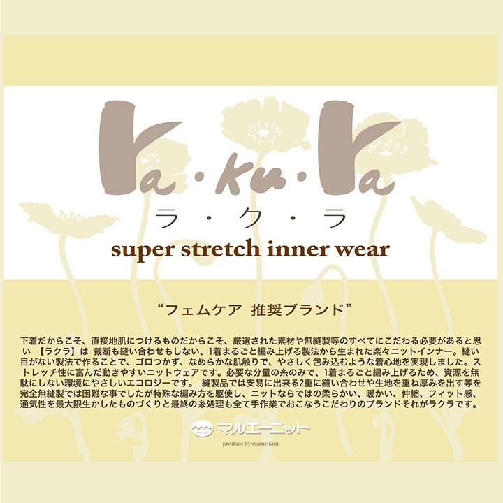 | ストレスフリーな毎日を過ごすために・・・直接肌に触れるものだから素材・編み方・サイズタグや洗濯表示タグなどのタグフリー、全てにこだわったニットインナー。 made in japan 「ra・ku・ra」