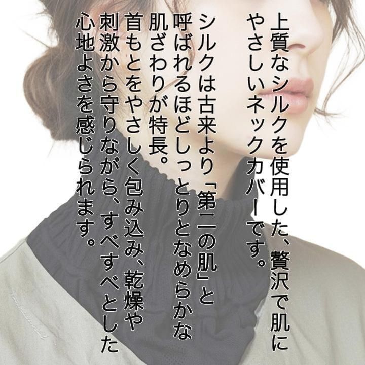 シルクは古来より「第二の肌」と呼ばれるほど、しっとりとなめらかな肌ざわりが特長。首もとをやさしく包み込み、乾燥や刺激から守りながら、すべすべとした心地よさを感じられます。