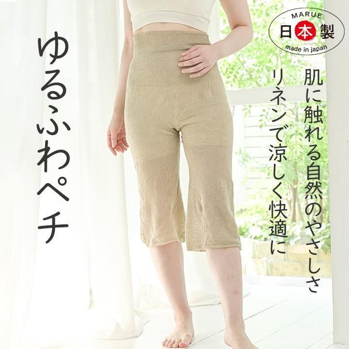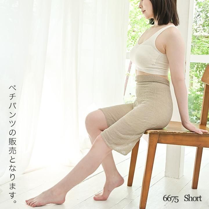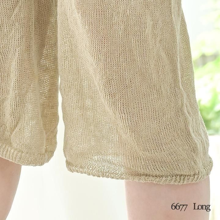 ざっくり編みでナチュラル感があり素朴、やさしい透け感に仕上がりました。締め付け感をなくすためにゴムを入れていません。その為、カラダに密着せず涼しく快適に過ごせます。